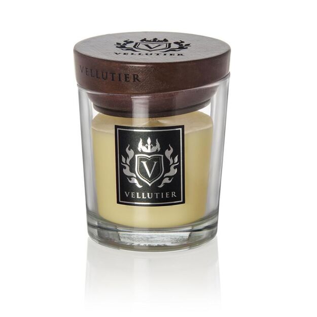 Świece Vellutier to klejnoty pośród świec zapachowych, które dzięki idealnie dobranym i starannie wyselekcjonowanym składnikom opromienią swoim pięknem każde wnętrze czyniąc je wyjątkowym. Wytworny kształt szkła z charakterystycznym dwu płaszczyznowym ścięciem tworzy z precyzyjnie dopasowaną przykrywką z prawdziwego drewna jedną, idealną bryłę. Grawerowane, heraldyczne logo podkreśla urodę szlachetnego, drewnianego materiału. Perfekcyjnie współgrające ze sobą elementy: specjalnej receptury aksamitny wosk, knot wyprodukowany przy użyciu egipskiej bawełny i wyrafinowane kompozycje zapachowe, po rozpaleniu świecy przenoszą w odległe miejsca. Świece Vellutier opowiadają pasjonujące historie, uwalniane wraz z rozwijającym się głębokim aromatem.